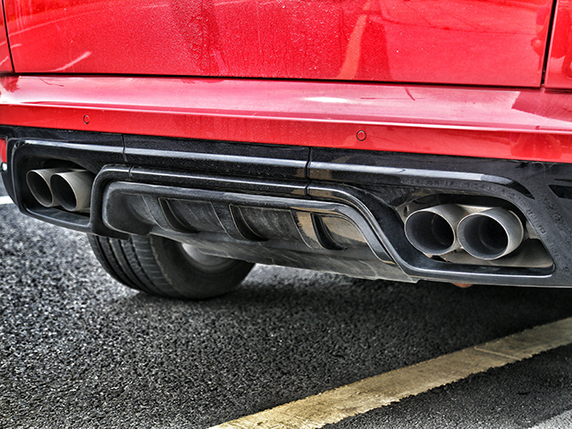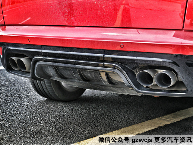 但如果你跟在SVR的身后,很快你会发现显眼双边四出的排气管,而未见其车先闻其声也是SVR的一大特色。台长坐在办公室里,SVR在外边一有动静,基本整条道路都会听得一清二楚。据闻SVR的排气,是参考了捷豹F-Type的一些技术,并加入了带电控阀双级主动排气系统,简而言之,只要路上有人挑衅你,一脚油就可以炸得对方妈都不认得。