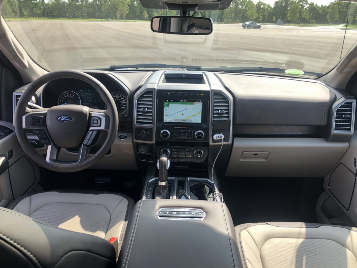 这是试驾的一台新车F150 LTD,皮卡中的王者。国内已经上市了57万多。 3.5V6 涡轮增压 10AT。有4.2吨的拖拽能力,比如老美休假时喜欢拖着房车、游艇再穷一点,拖个摩托艇去玩啥的。
