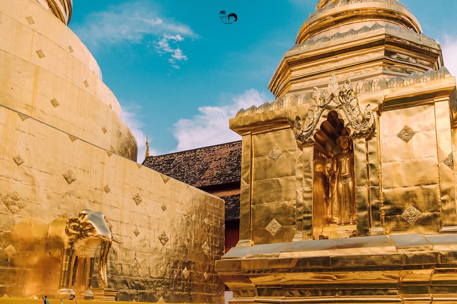 帕辛寺是古城里规模最大、地位最崇高的佛庙了。即使是古城内最出名的寺庙,大国庆的也见不到太多游客,但也许是因为有一半的建筑包括主殿都在修缮维护之中。之前在网上看到的白色佛塔,如今已被粉成金色,四只大象雕塑立在各侧,每一个拐角都建造了佛伞。佛塔的正式称呼为“斋滴”(chedi),源于古老的巴利文佛经,意为骨灰埋葬地,也象征着佛教的世界中心须弥山。