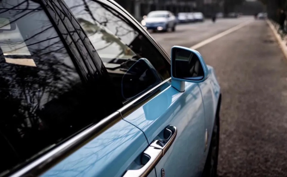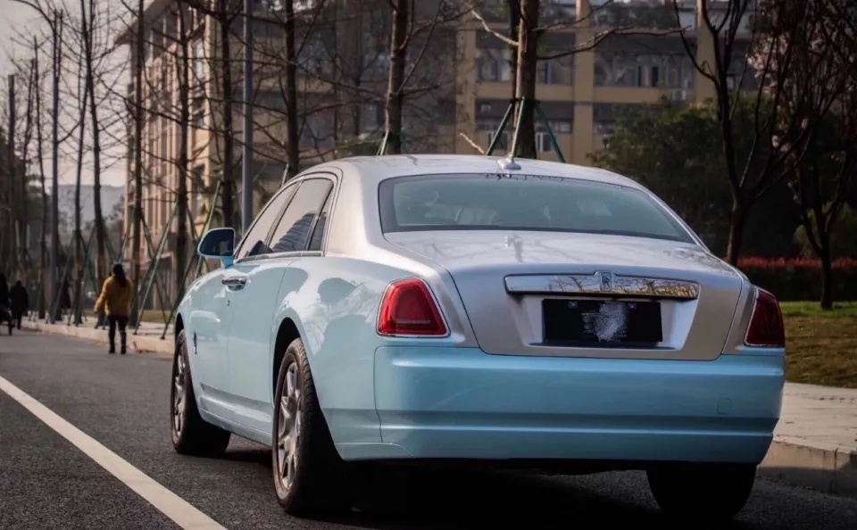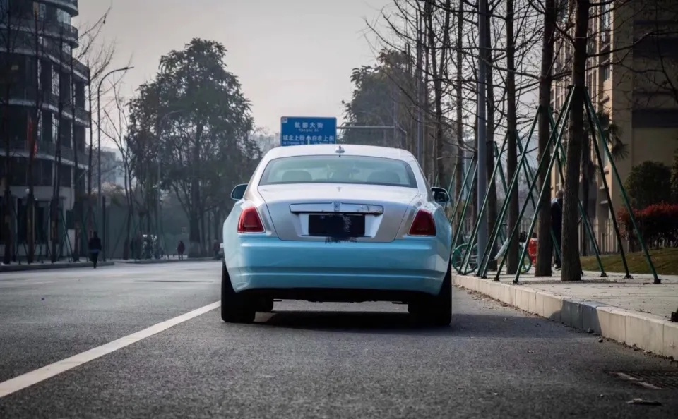 双拼改色劳斯莱斯古思特冰川蓝,搭配金属银 像漂浮的一小块蓝色浮冰,清澈冰冷,犹如夜色里反射着幽光的蓝色星辰。同时,银色可以吸收任何一种色光,所以搭配任何颜色都不会突兀,搭配浅色调也不会很无趣。