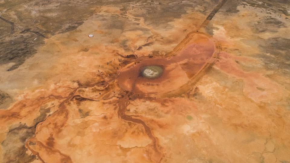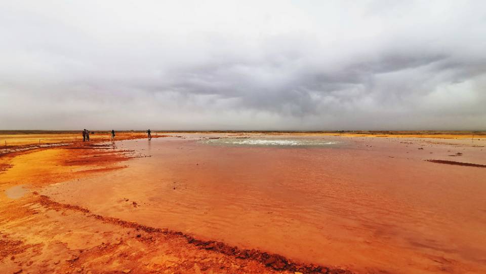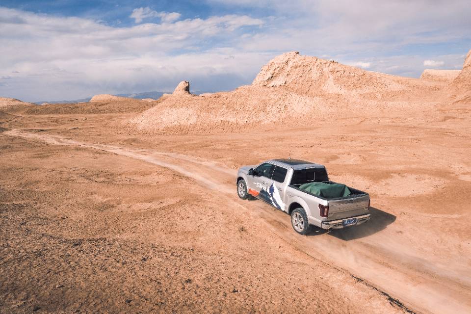 #一万种征途 福特皮卡野奢营地# 翻越高山,穿过戈壁,F-150 LTD车队继续前行。花土沟镇往西数十公里,在那鸟兽尚且不敢靠近的荒野深处,我们找到了传说中的“恐怖之眼”…艾肯泉!