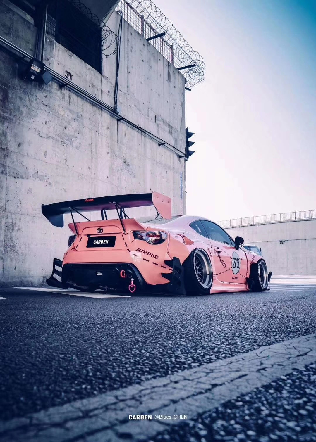 没想到丰田86低趴改装更加迷人。轮毂的设计非常有特点,夸张的大尾翼,真是独一无二,很适合少女们,帅爆了。