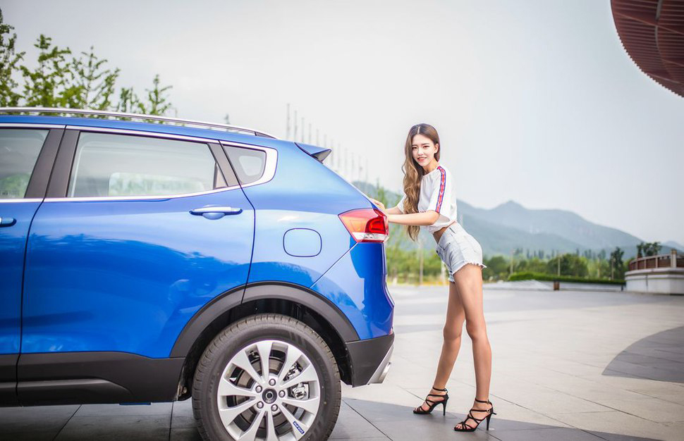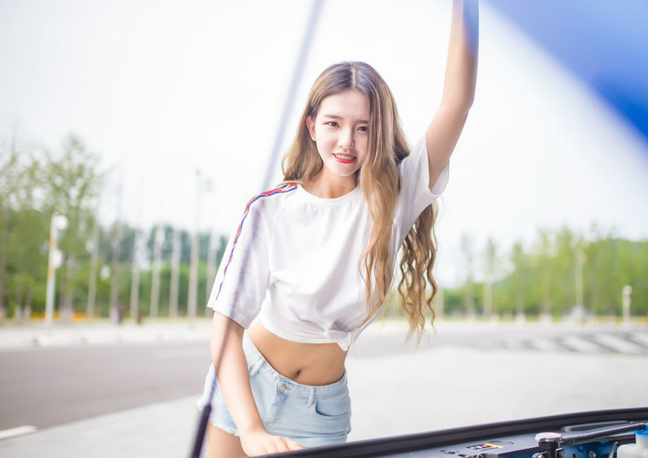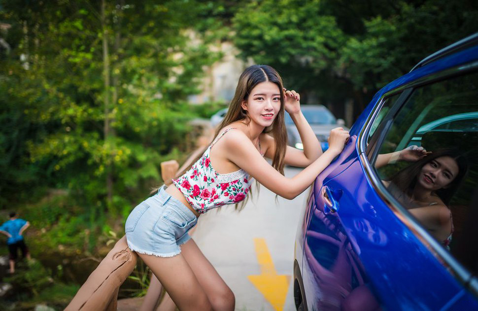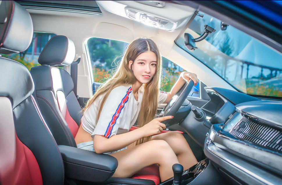 大白腿晃眼呀,没看清楚是什么车。