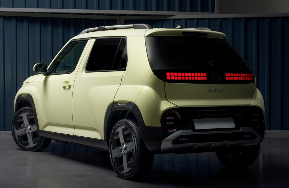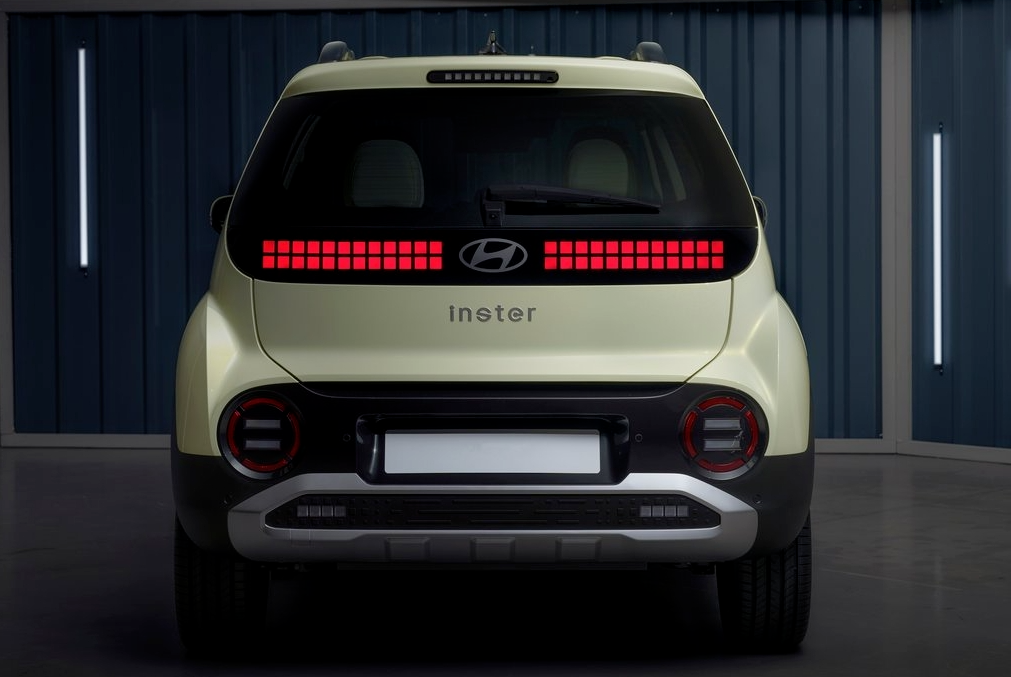 首先看到外观部分,新车前脸的两个圆形大灯十分显眼,有种前卫又可爱的感觉,前机盖部分的灯带和国内一众新能源SUV有些相似之处。车尾部分,INSTER的设计偏向圆润风,中间的两款格子型尾灯很有辨识度。
