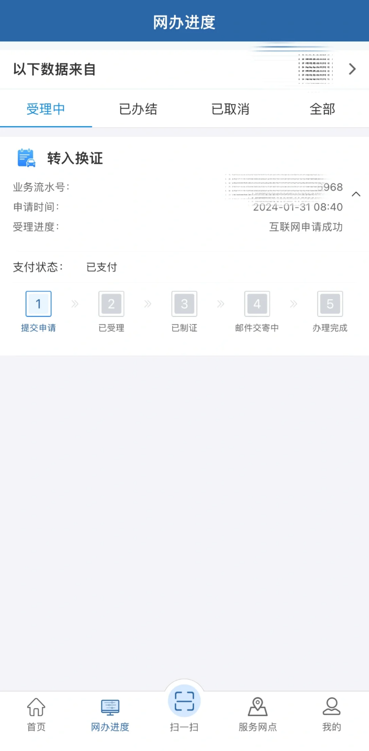 7..查看办理进度。提交成功后,可以通过APP首页的“网办进度”功能随时查看业务办理进度。