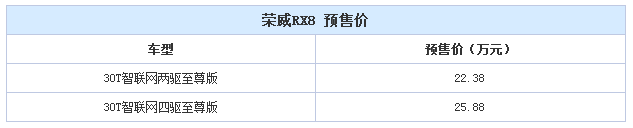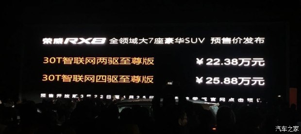 4月26日上市 荣威RX8预售22.38-25.88万