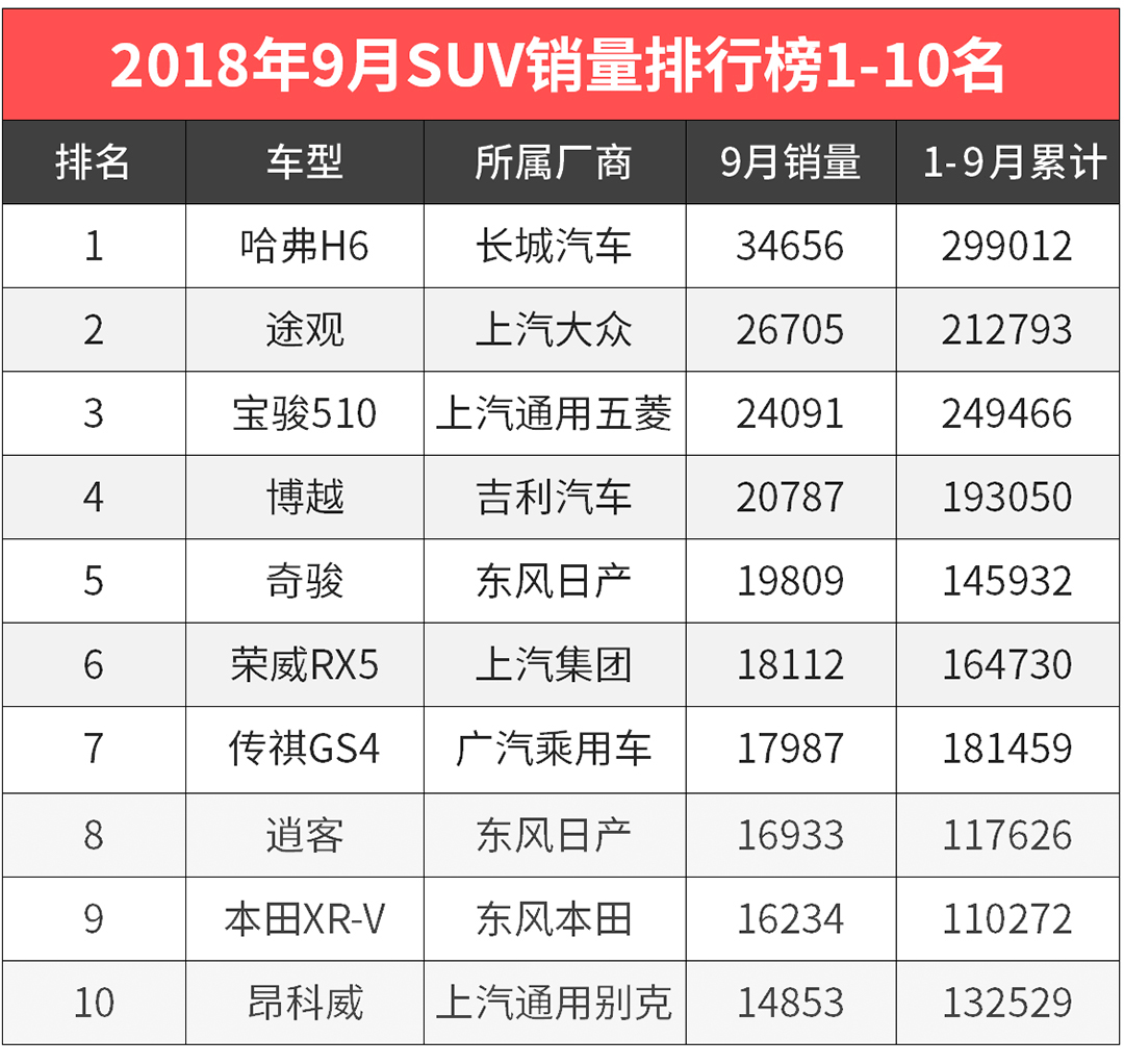 9月SUV销量大曝光!你真不愿意买国产车了?